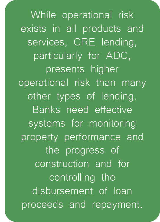 Existing guidance around CRE lending is geared toward banks that specialize in CRE loans from 100 to 300 percent of their risk-based capital, rather than lenders that make the occasional CRE loan. Lenders that demonstrate acceptable risk management practices can continue to make CRE loans at a high level, while those that do not manage risk appropriately may be required to make changes to reduce their risk exposure.